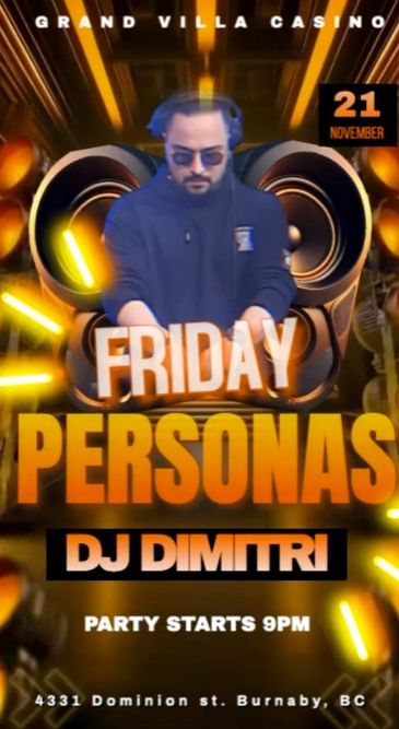 Expect an epic night filled with the hottest tracks, seamless mixes, and an energy that will keep you moving all night long. Whether you're in the mood to dance to the latest hits or groove to some classic throwbacks, DJ Dimitri's got you covered.